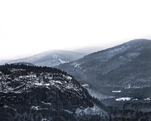 Taken on February 14, 2022, at Cathedral Ledge facing west-northwest in North Conway, NH. Camera: Pentax 67 Lens: 300 mm, telephoto Film: Kodak TriX 400, medium format ISO: 67 Aperture: F45 Shutter Speed: 4 seconds Filter: #47 Blue, Filter Factor 6 Highlights: Zone 7 Shadows: Zone 3 Tripod: Yes