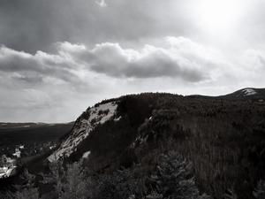 Taken on February 15, 2022, facing White Horse Ledge in North Conway, NH. Camera: Pentax 67 Lens: 45 mm, wide-angle Film: Kodak TriX 400, medium format ISO: 25 Aperture: F22 Shutter Speed: 1/15 of a second Filter: #29 Red, Filter Factor 16 Highlights: Zone 8 Shadows: Zone 2 Time: 2:00 pm Tripod: Yes