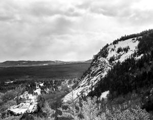 Taken on February 15, 2022, facing White Horse Ledge with the White Mountain Hotel & Resort at the base in North Conway, NH. Camera: Pentax 67 Lens: 135 mm, normal Film: Kodak TriX 400, medium format ISO: 25 Aperture: F22 Shutter Speed: 1/8 of a second Filter: #29 Red, Filter Factor 16 Highlights: Zone 8 Shadows: Zone 3 Time: 1:50 pm Tripod: Yes